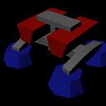 那个模型:红色的方块是导弹发射管,蓝色的是喷气动力装置,灰色是框架。其实从力学结构来说,悬挂式结构(喷气的在上面,重心在下面)更合理一些。你看着改改吧。
