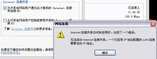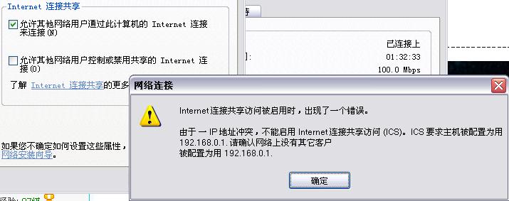 重装了系统,现在进行Internet共享就会出现如下提示。请问哪位知道解决方法?或者提供个问的地方也好……