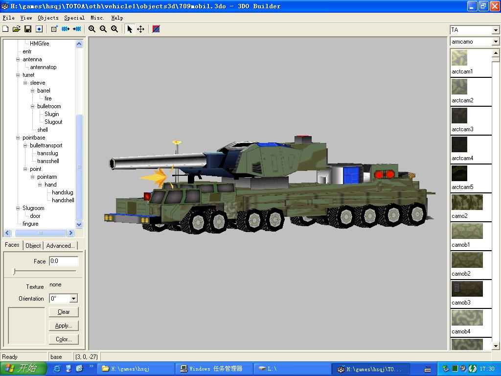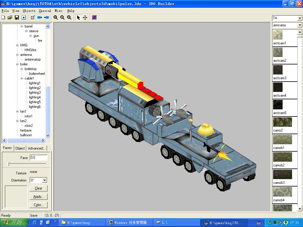 等着看我的709毫米陆军重炮吧。保证馋得诸位玩家流口水。国外的单位能做的像它一样精细的我至今还没见过。16个轮子在行走的时候会转,射击之后大口径弹丸的装填过程看得一清二楚,当年做它足足花了我一个礼拜时间。对了,如果在发春里面,我可以实现很久以来的计划,在车身侧面设置一个文字窗,当装填动作完成时,文字窗的文字从“空”“安全”到“火”“塞装”,跟EVA里的阳电子炮学的。呵呵。只是TA里面根本看不清楚,最后就没弄。发春看来应该能行,弄出来会很帅。